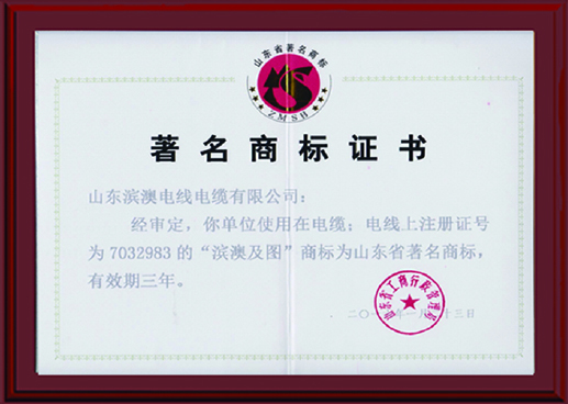 著名商标证书